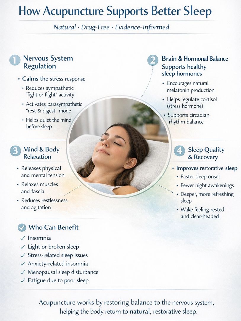 Rather than focusing only on sleep itself, a skilled TCM practitioner takes a holistic approach, asking about daily energy levels, digestion, emotional health, stress, and other symptoms. These signs help identify what is out of balance and guide treatment aimed at restoring harmony within the body and calming the mind.